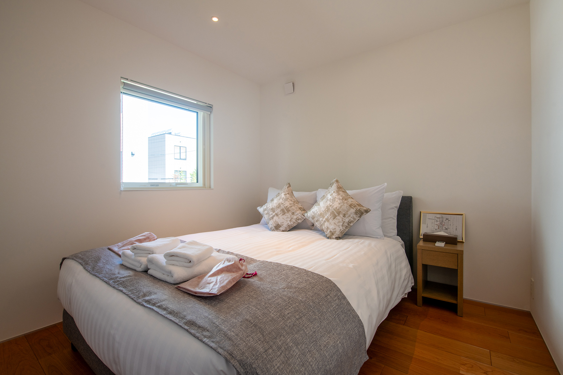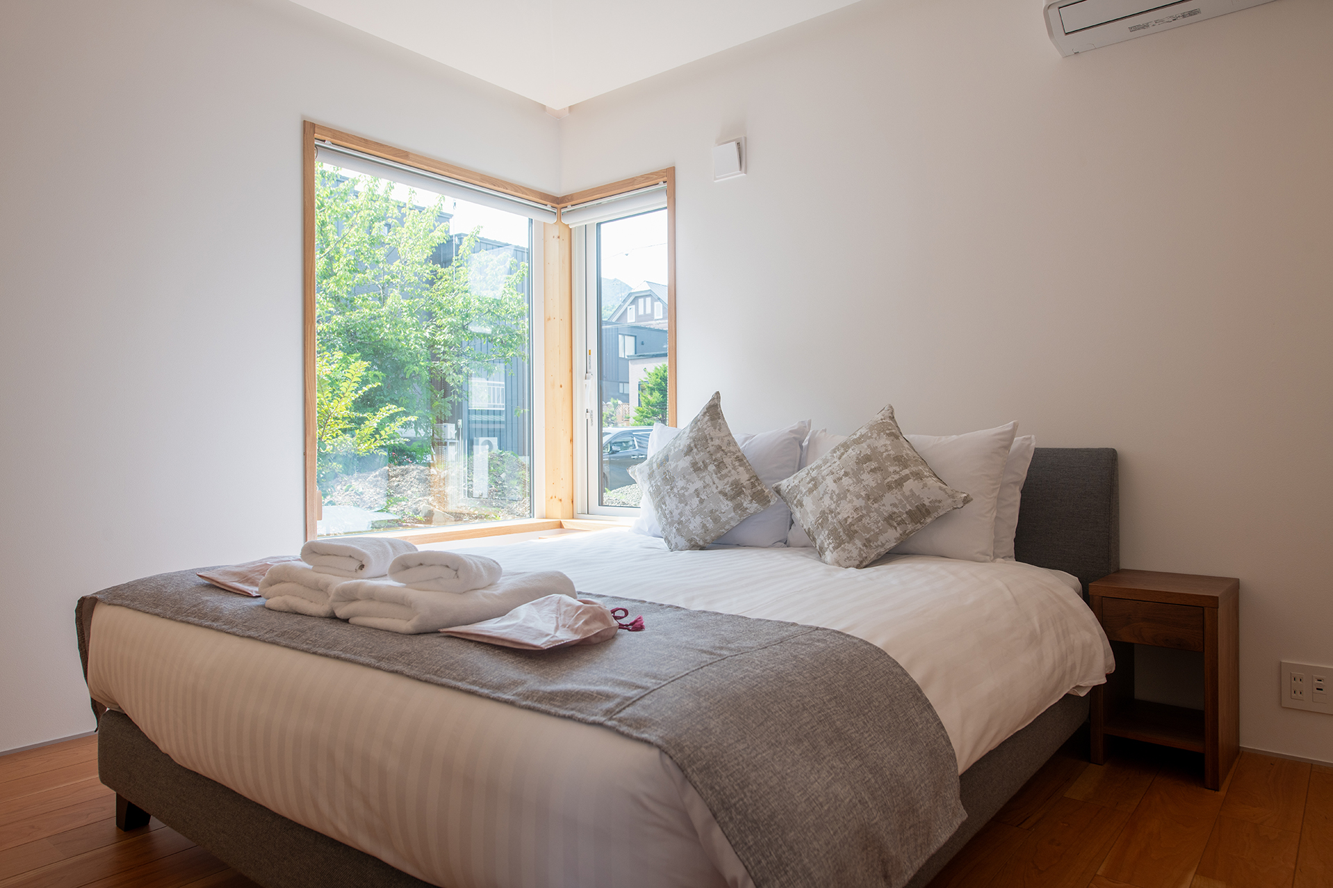 With three bedrooms, the home is ideal for families or groups, comfortably accommodating guests while providing plenty of privacy. Each room is fitted with air conditioning, ensuring a cool retreat in the warmer months and cozy comfort in Hokkaido’s snowy winters.