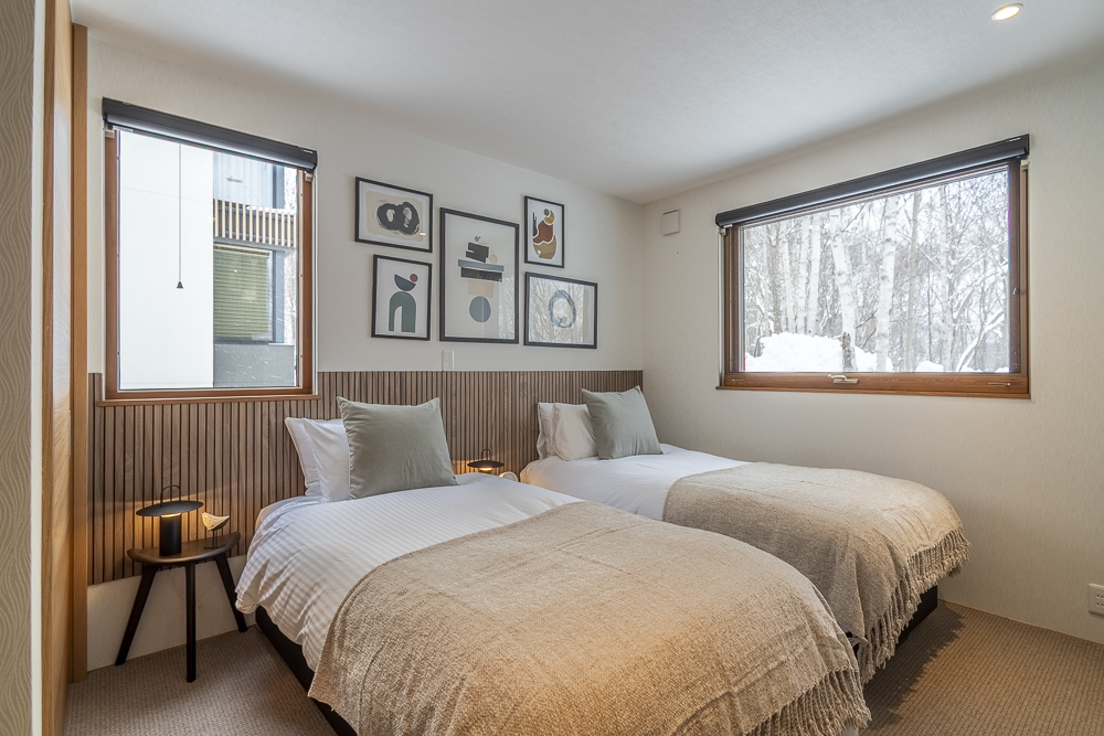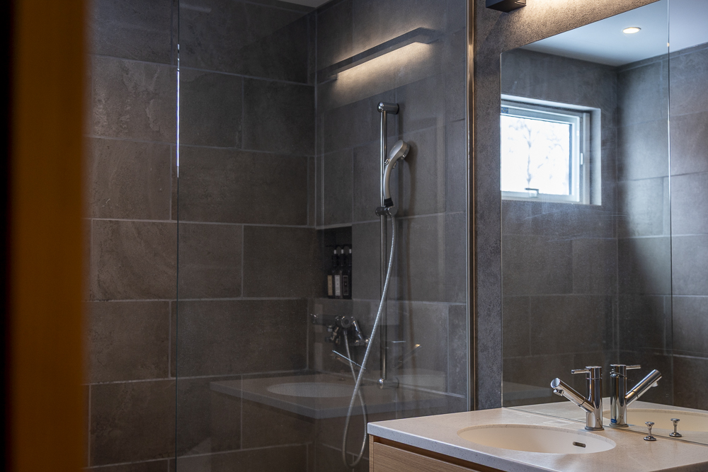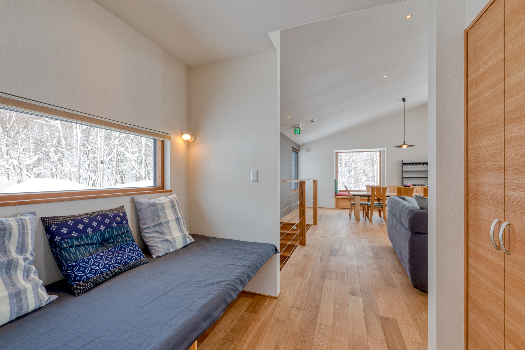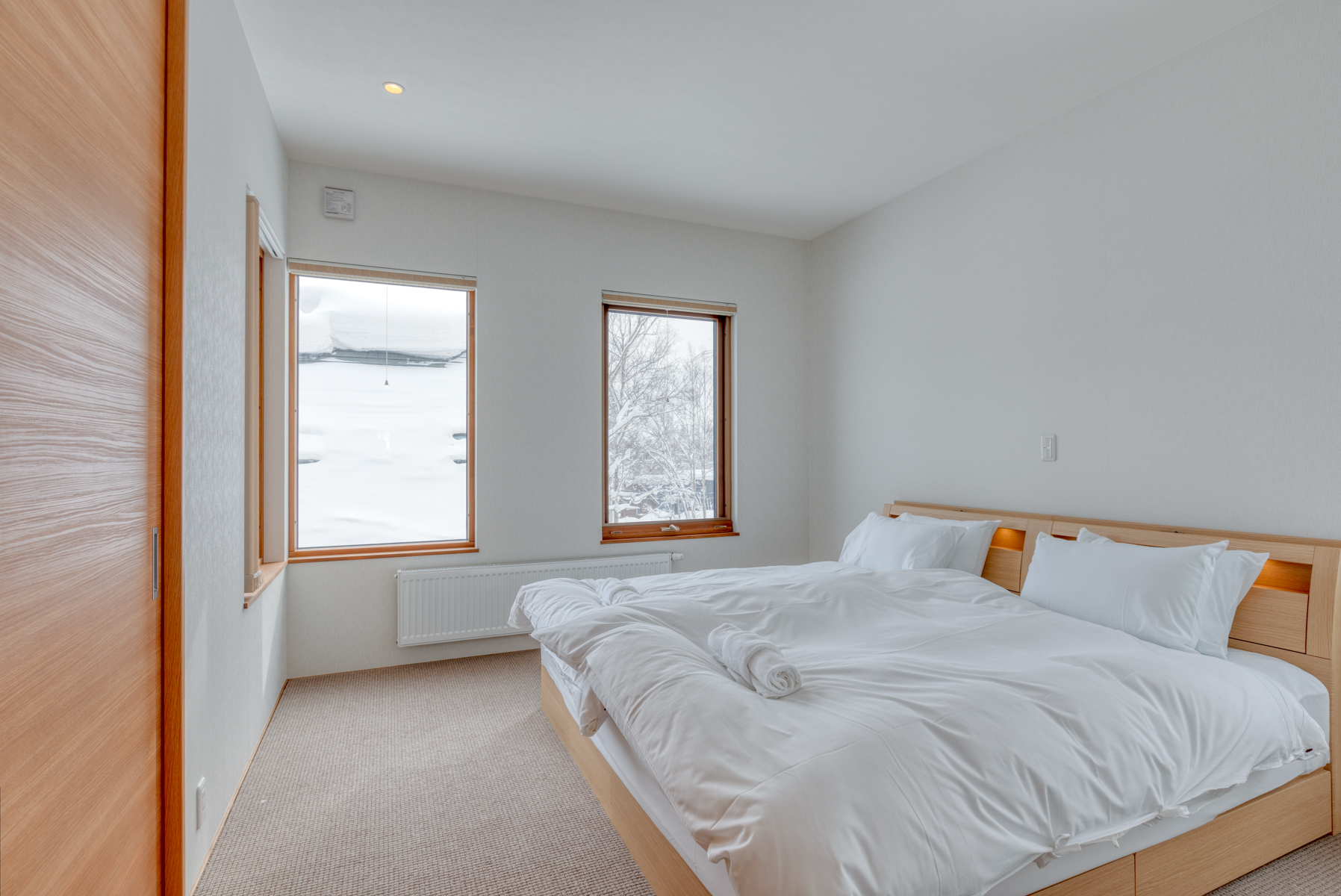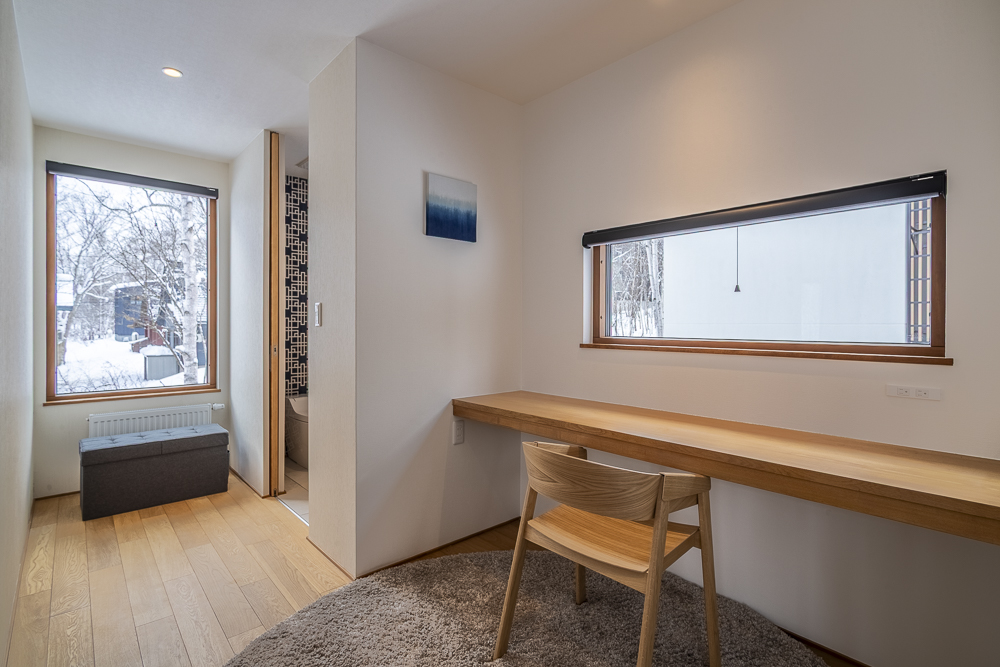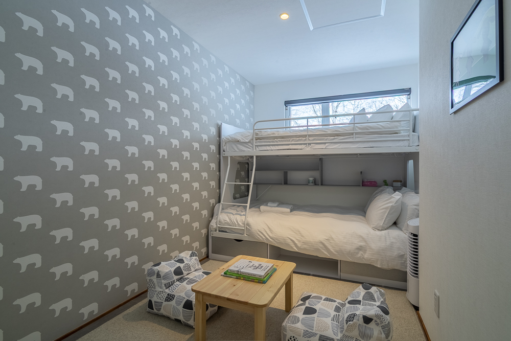 The ground level features a welcoming genkan and ski dry room with direct access to the enclosed garage. There are 3 guest bedrooms, one of which has an ensuite bathroom, while another guest bedroom and bunk room shares a bathroom.