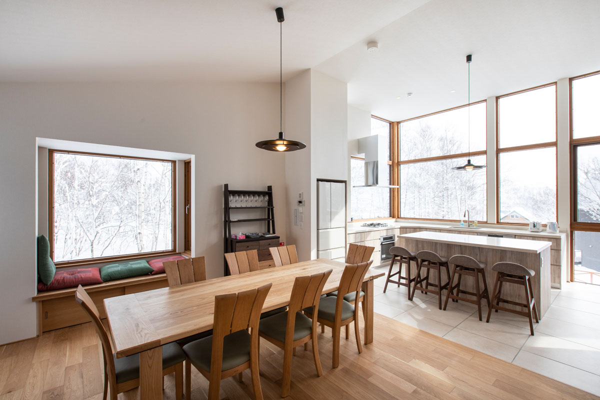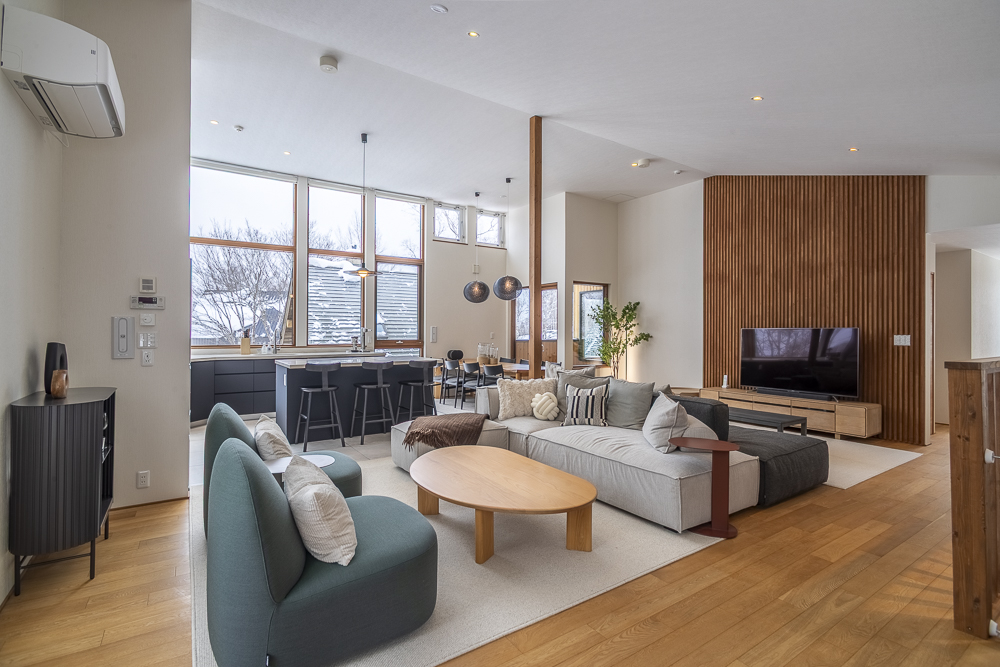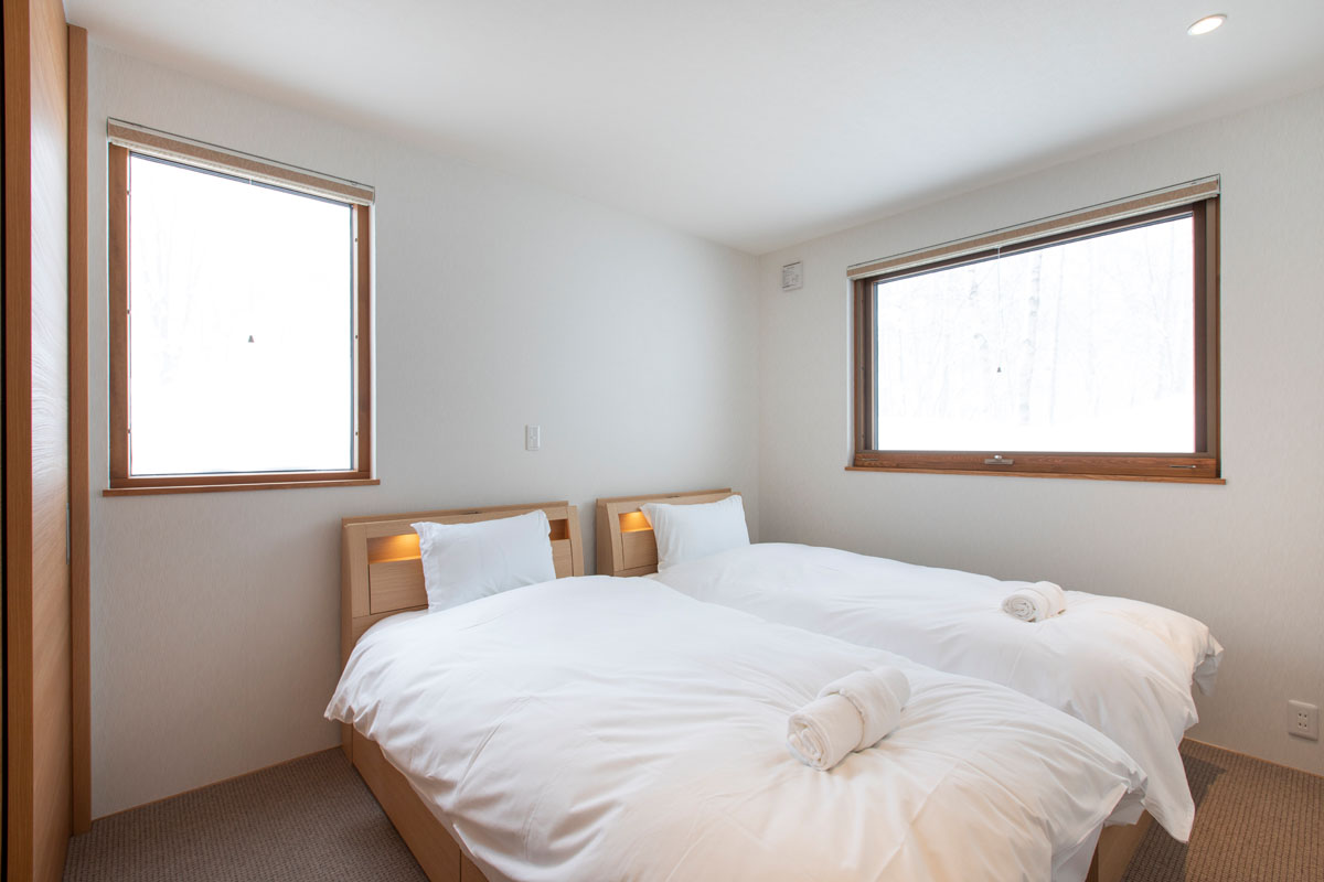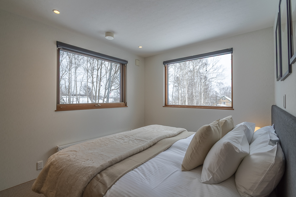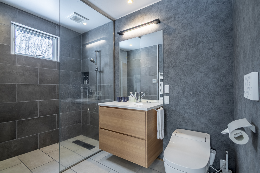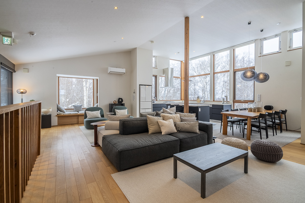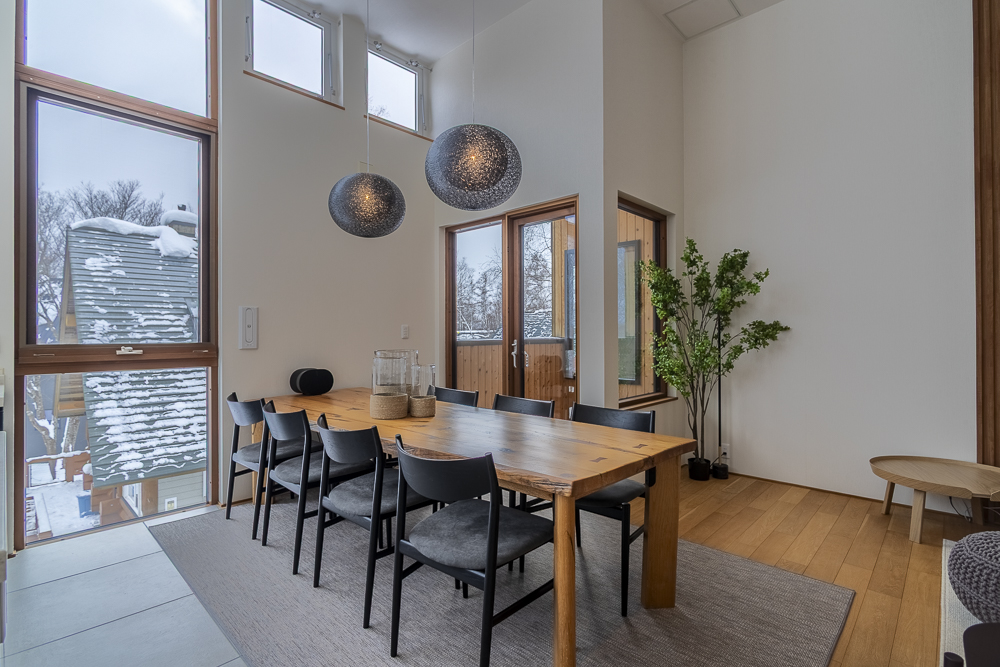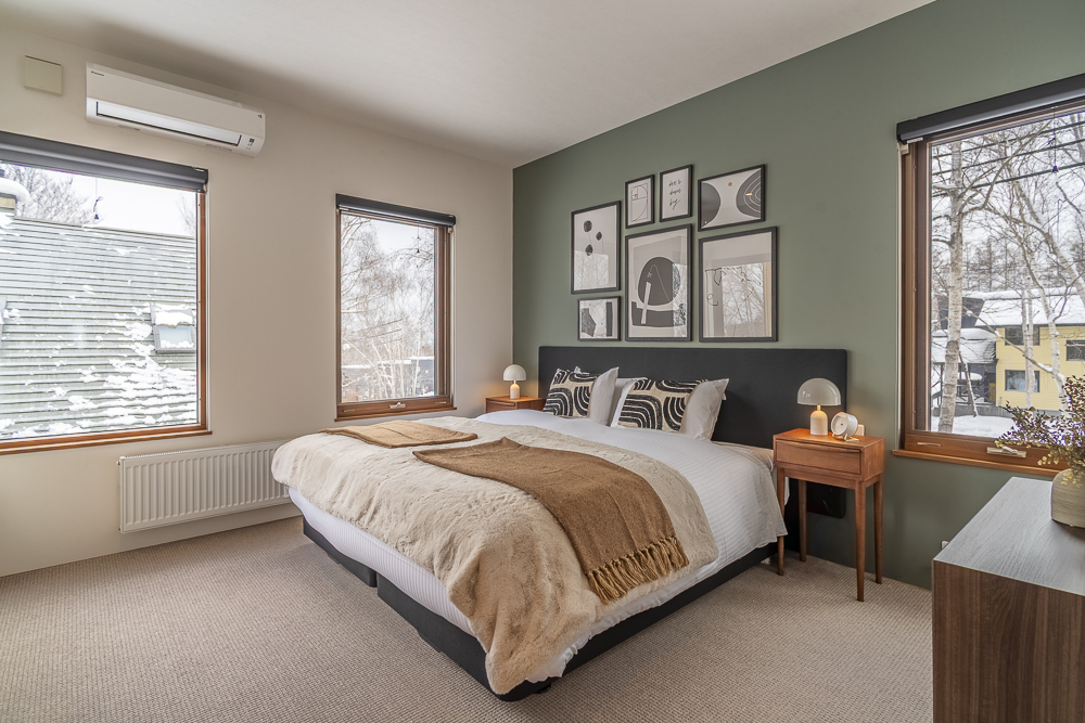 The ground level features a welcoming genkan and ski dry room with direct access to the enclosed garage. There are 3 guest bedrooms, one of which has an ensuite bathroom, while another guest bedroom and bunk room shares a bathroom.