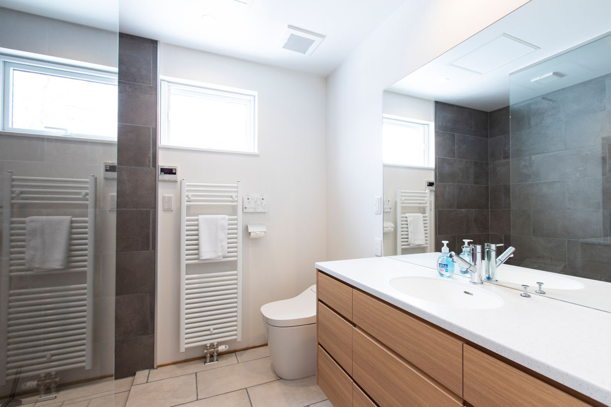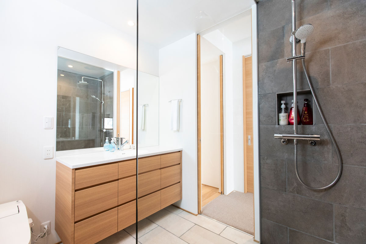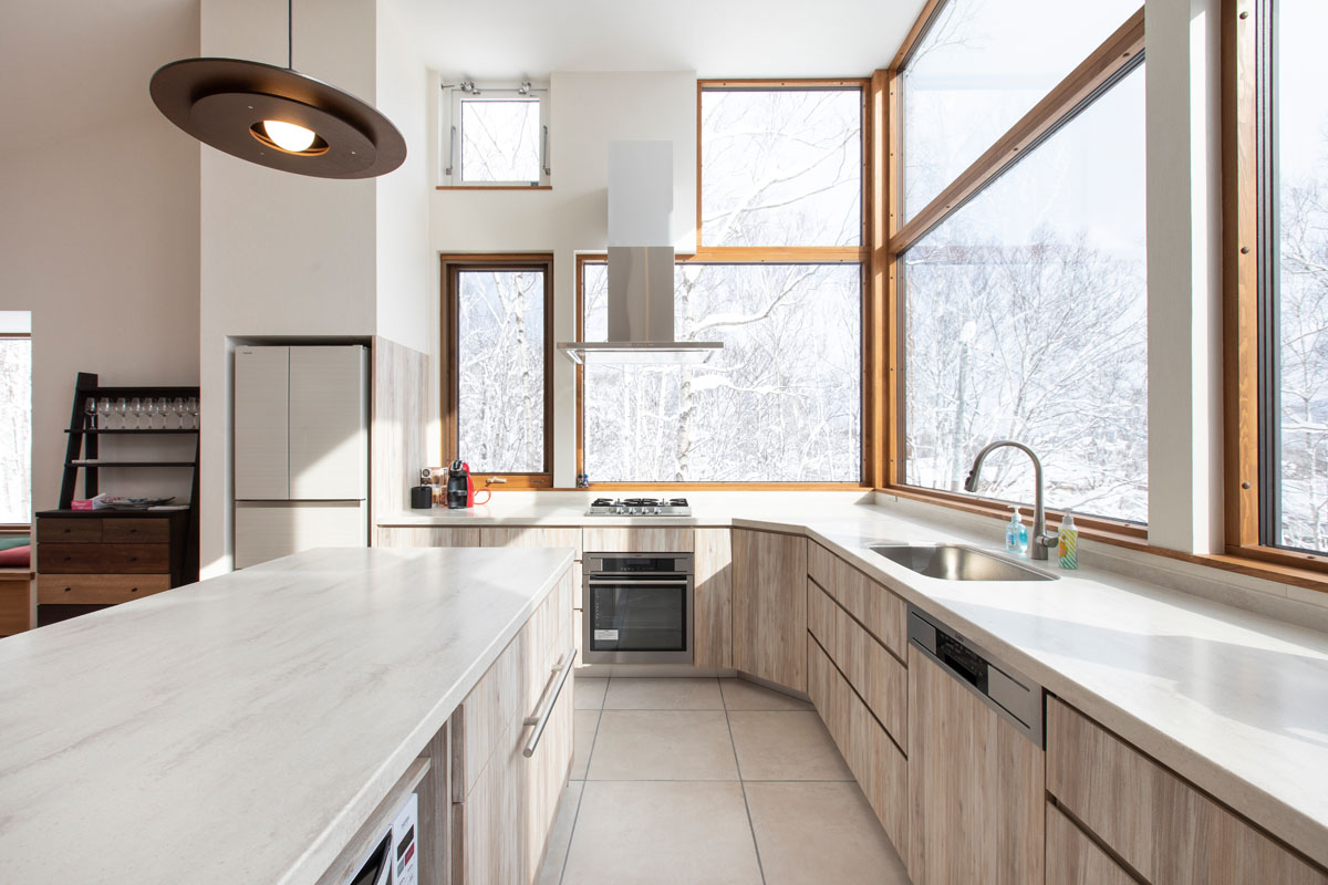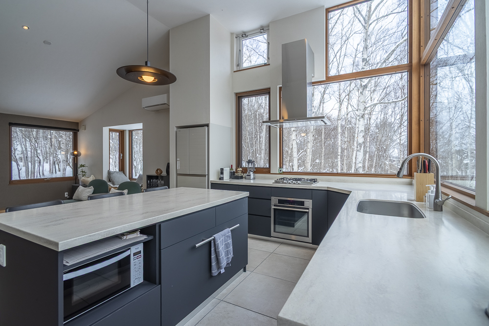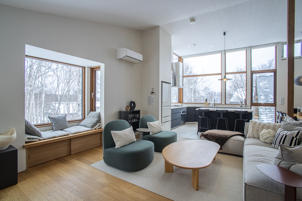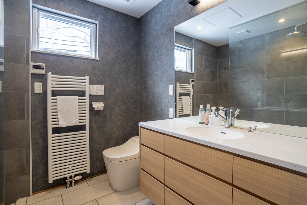 The ground level features a welcoming genkan and ski dry room with direct access to the enclosed garage. There are 3 guest bedrooms, one of which has an ensuite bathroom, while another guest bedroom and bunk room shares a bathroom.
