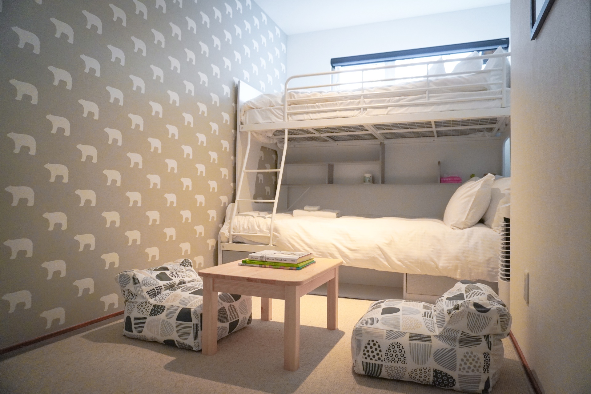 The ground level features a welcoming genkan and ski dry room with direct access to the enclosed garage. There are 3 guest bedrooms, one of which has an ensuite bathroom, while another guest bedroom and bunk room shares a bathroom.
